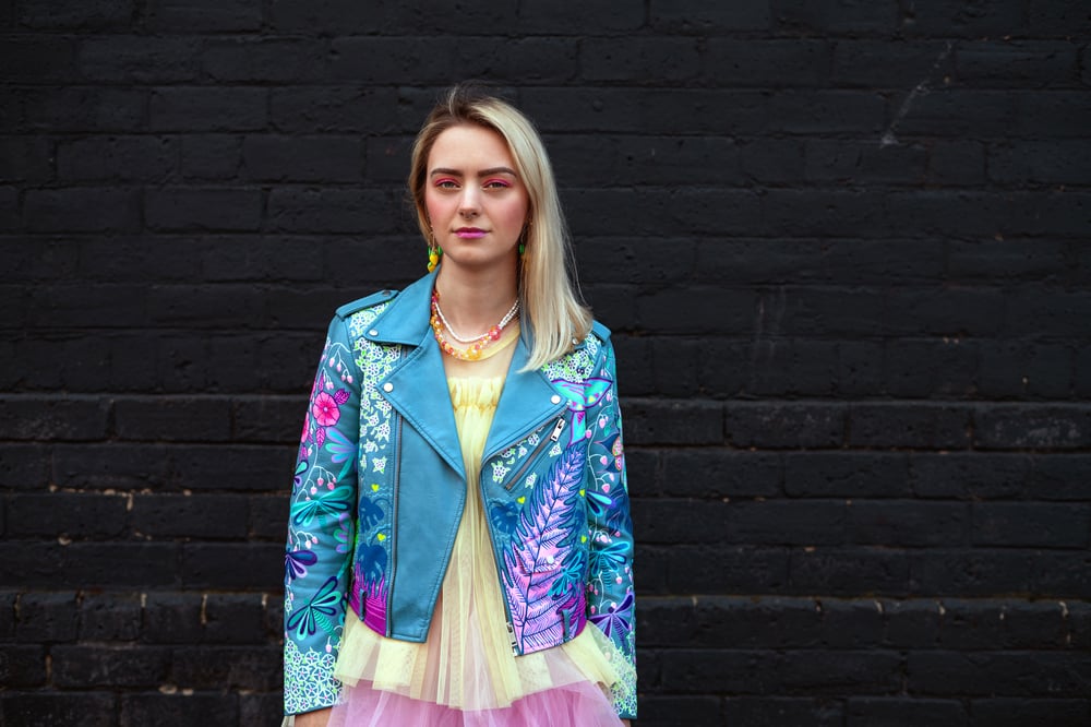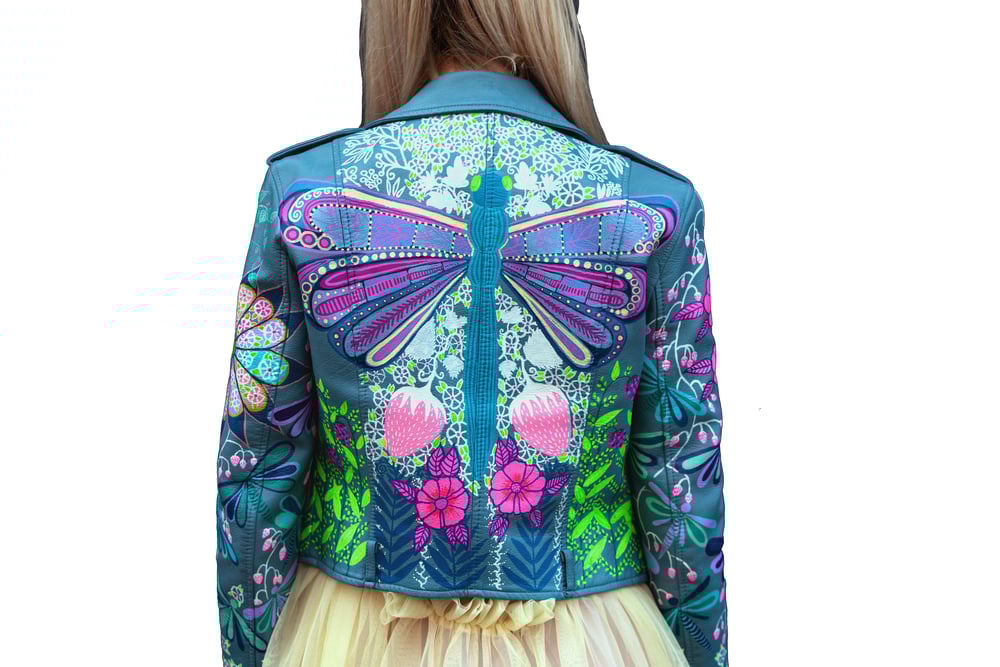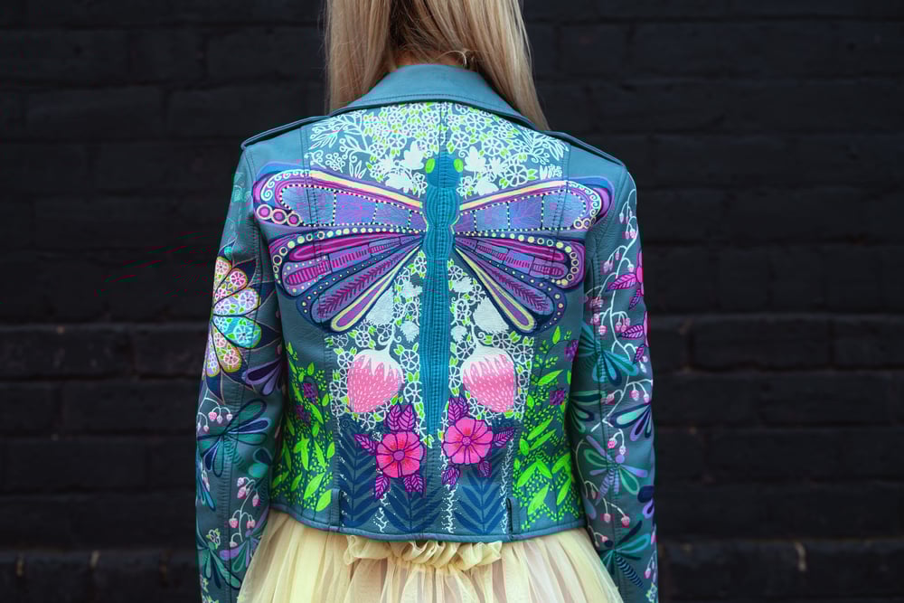Bespoke Hand Painted Vegan Leather Jacket Size S