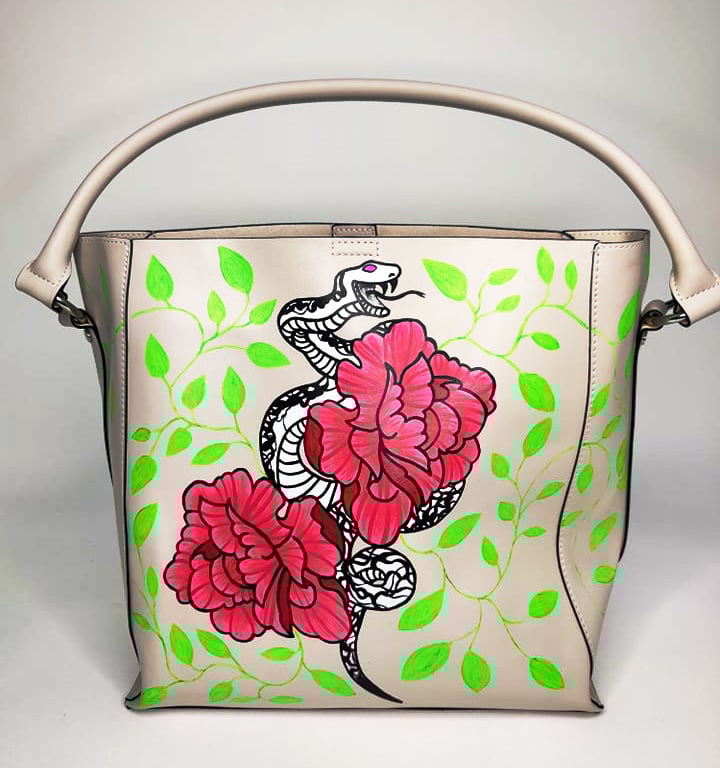 Handpainted with professional leather paint and coated with protective layer